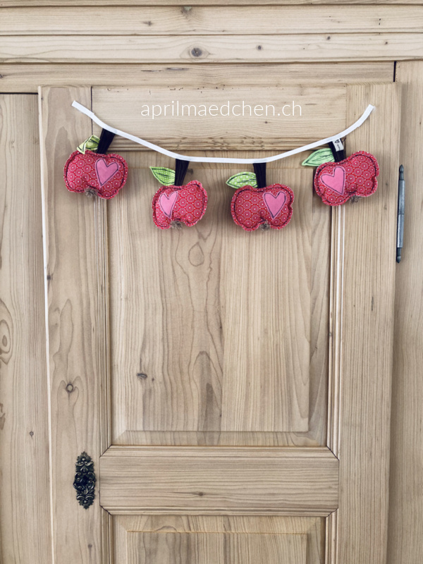 So seht nun meine neue Ernte aus. Saftig und ganz frisch vom Lande. Mit ganz viel Liebe gepflanzt und mit Hingabe gepflückt. Die neuen ApfelWimpels. Diese hier wandern in den Shop und fortlaufend werden noch weitere entstehen.